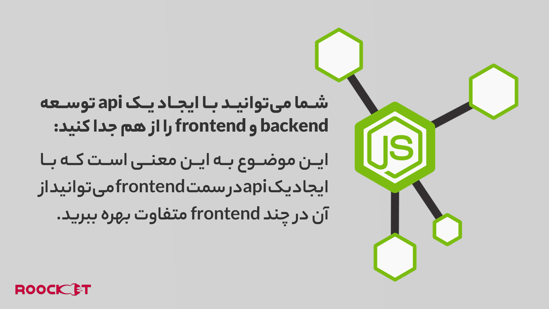 شما میتوانید با ایجاد یک API فرایند توسعه Back-End و Front-End را از هم جدا کنید. این موضوع به این معنی است که با ایجاد یک API در سمت Front-End میتوانید از آن در چند Front-End متفاوت بهره ببرید.